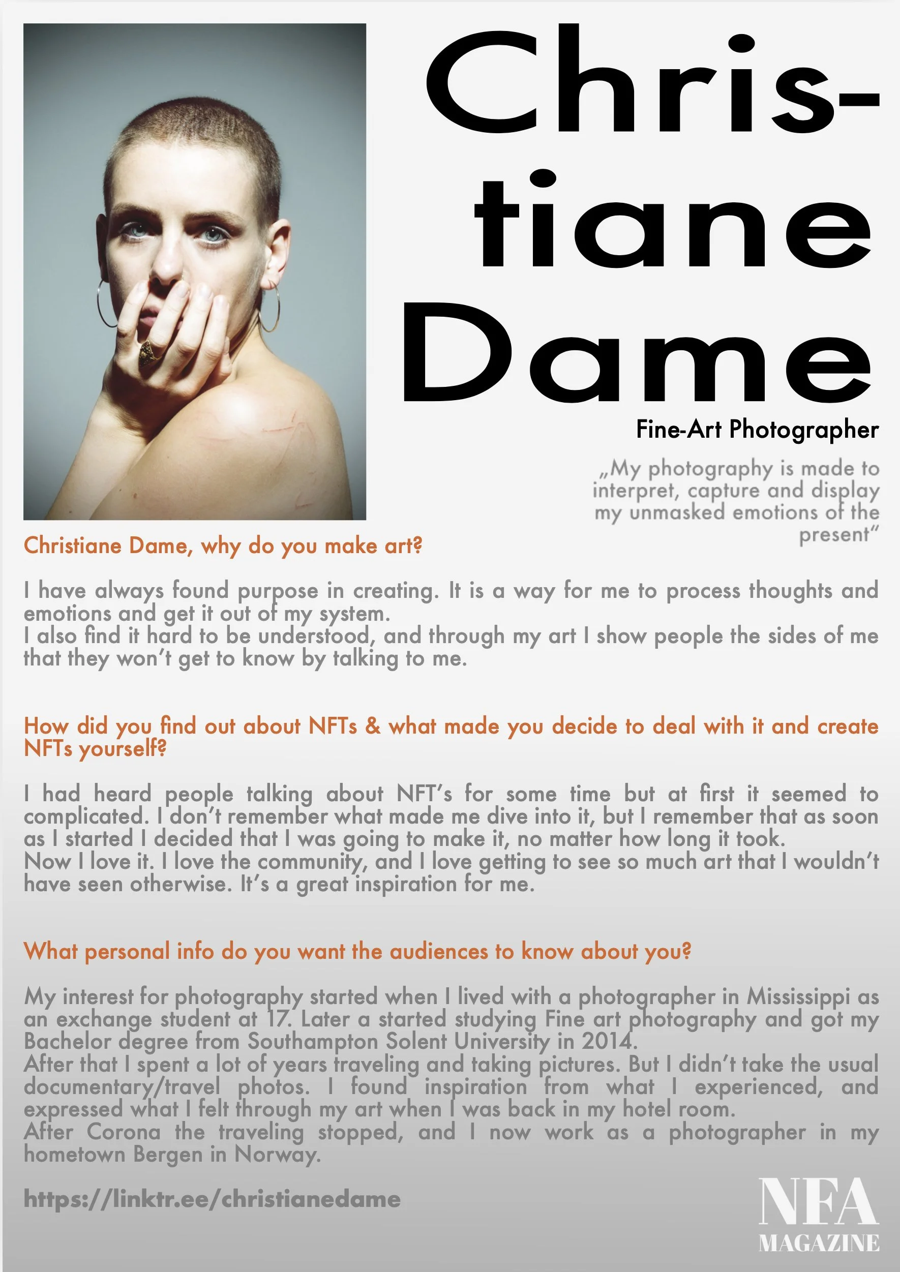 The Non Fungible Art Magazine is the place where neo-art history is immortalized. 25 artists and their works of art present themselves in each issue. The NFA Magazine is published four times a year. All works of art shown are subject to the copyright protection of the artist. Per purchase of the NFT "NFA Magazine" you are entitled to print it out once for yourself. Print ready in A4 format. Collect a part of neo-art history. 4th Issue 2023 September.